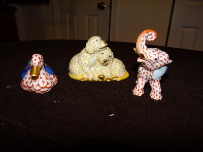 Item # 23 -- (1) Lot of 3 Herend Figurines. Duck 2", Elephant 3 1/4", Golded Retriever 2 3/4"