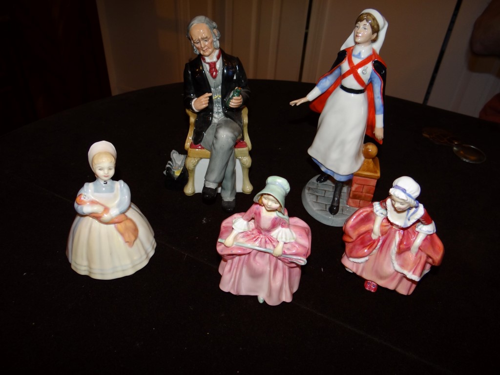 Item # 34 -- (1) Lot of 5 Royal Doulton Figurines. Nurse 8 3/4", The Doctor, The Rag Doll, Bo Peep, Goodie Two Shoes