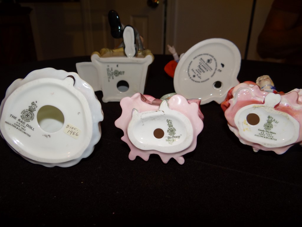 (1) Lot of 5 Royal Doulton Figurines. Nurse 8 3/4", The Doctor, The Rag Doll, Bo Peep, Goodie Two Shoes