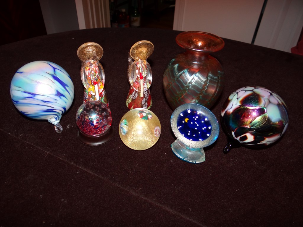 Item # 46 -- (1) Lot of 8 Italian and Art Glass. Including a 5" Vase signed Robbert Held.