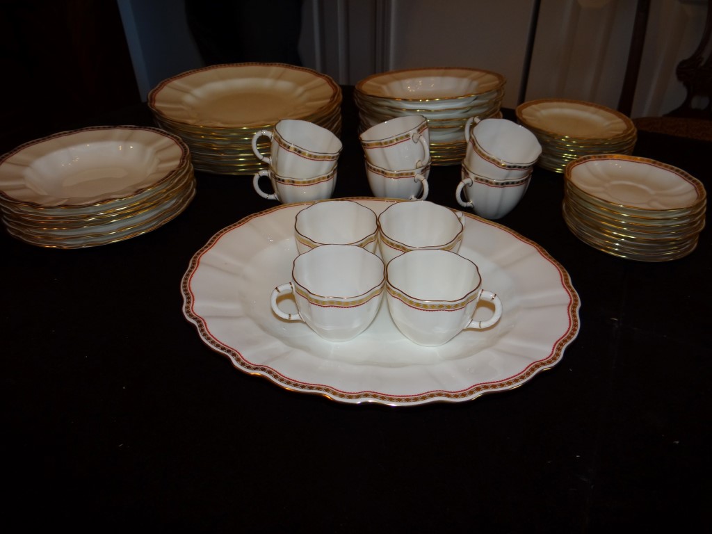 Item # 51 -- (1) 56 Pieces Royal Crown Derby Dinnerware. Carlton Red.