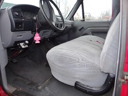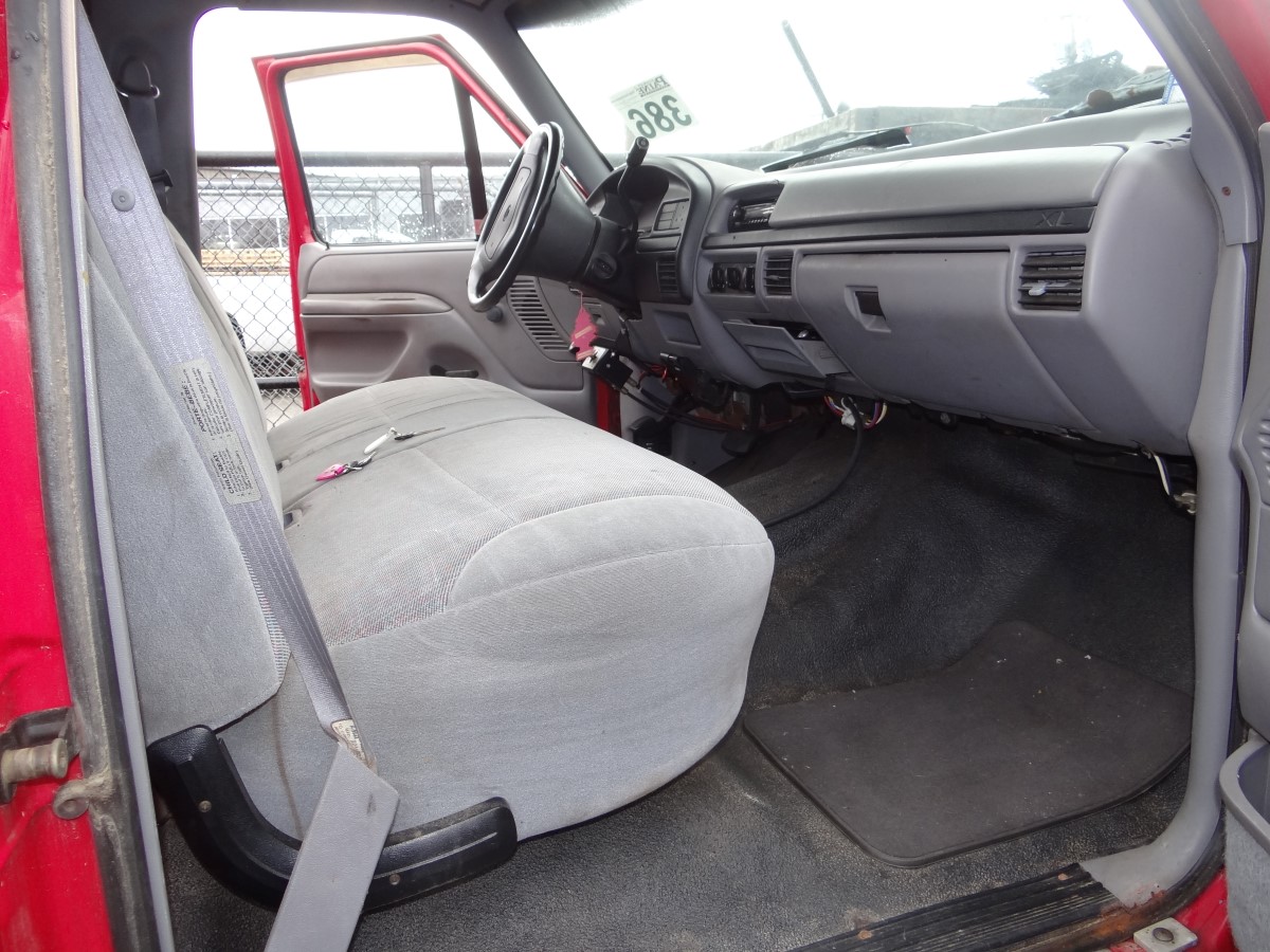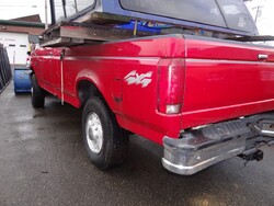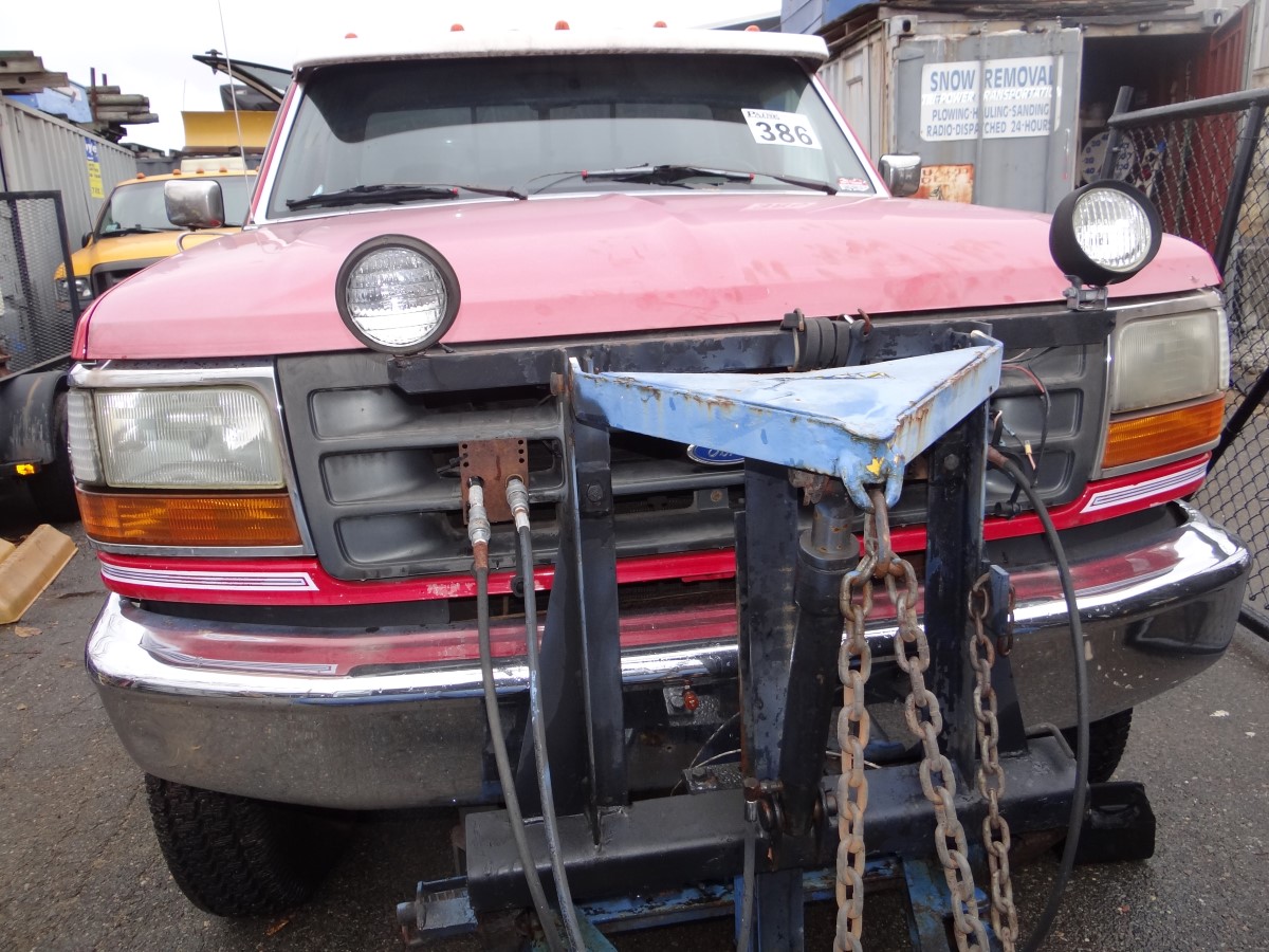 Item # 386 -- (1) 1996 Ford F250 3/4 ton P/U 4WD 8 Cylinders H 5.8L FI 351 CID. VIN: 1FTHF26H6TEA75688. Odometer: 102,726. With Plow Blade 8’ X 32” H And Fisher Control. Along With A Century Truck Cap 67” X 82”. The Vehicle Will Probably Need To Be Towed Off The Lot On A Flatbed.