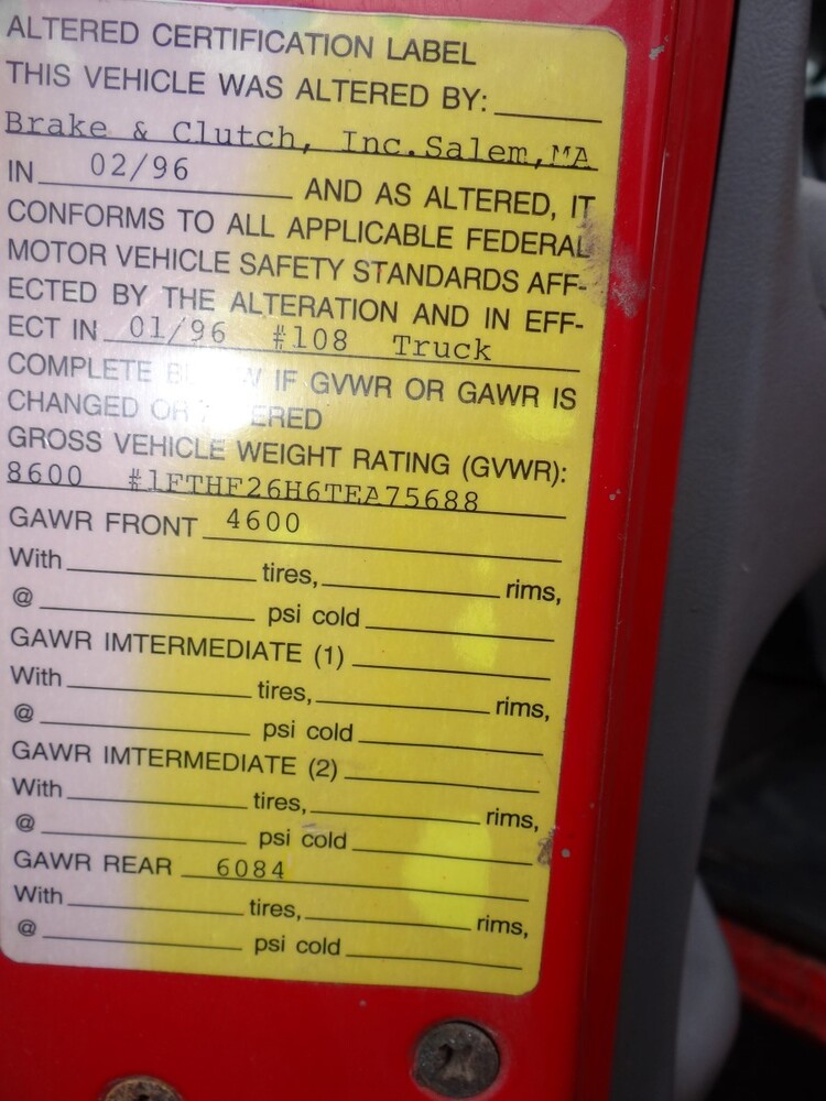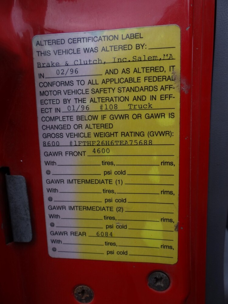 (1) 1996 Ford F250 3/4 ton P/U 4WD 8 Cylinders H 5.8L FI 351 CID. VIN: 1FTHF26H6TEA75688. Odometer: 102,726. With Plow Blade 8’ X 32” H And Fisher Control. Along With A Century Truck Cap 67” X 82”. The Vehicle Will Probably Need To Be Towed Off The Lot On A Flatbed.