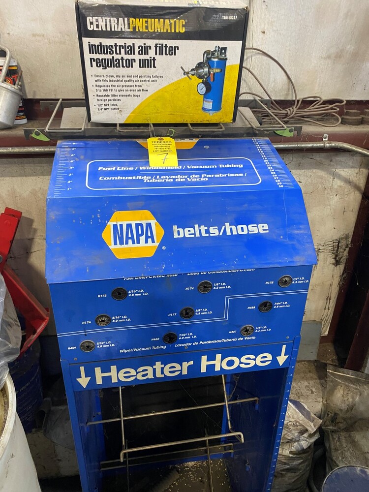 Item # 7 -- central pneumatic industrial air industrial air filter regulator unit, Napa belt/hose display