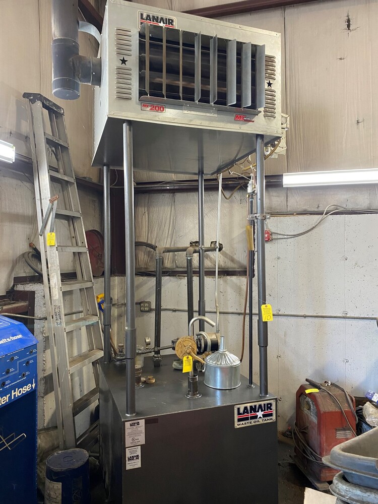 Lanair waste oil tank MX 200. The waste oil tank will be taken down for removal prior to pick up at a cost of $200. This fee will be included and added to your invoice.