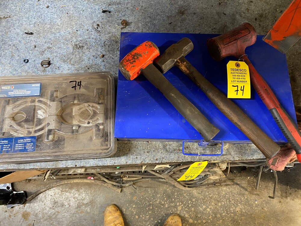 Item # 74 -- Matco bearing splitter,blue empty parts box,3 sledge hammers
