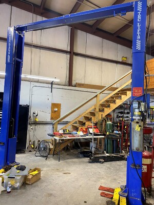 Item # 86 -- Tech 11,000lb two post lift. The lifts will be disassembled for removal prior to pick up at a cost of $350. This fee will be included and added to your invoice.
