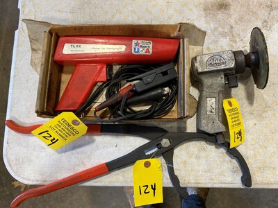 Item # 124 -- Mac timing light, Mac air sander, truck oil filter plier