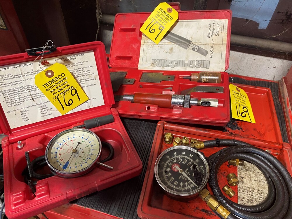 Item # 169 -- Mac vacuum fuel pump pressure kit, snap-on air powered scraper, Mac oil pressure tester