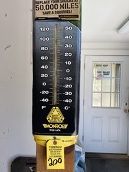 Item # 200 -- Snap on tools metal sign along with Monroe metal sign thermometer