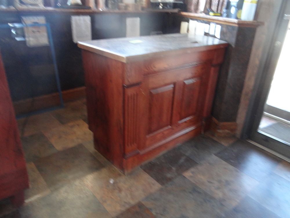 Item # 1 -- (1) Oak hostess stand w 2 drawers 4' X 22" X 34"