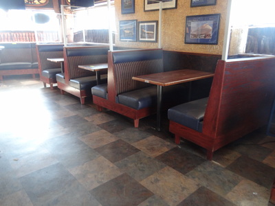 Item # 2 -- (3) Sets upholstered booths with solid wood tables 45" X 24" w/ acrylic dividers