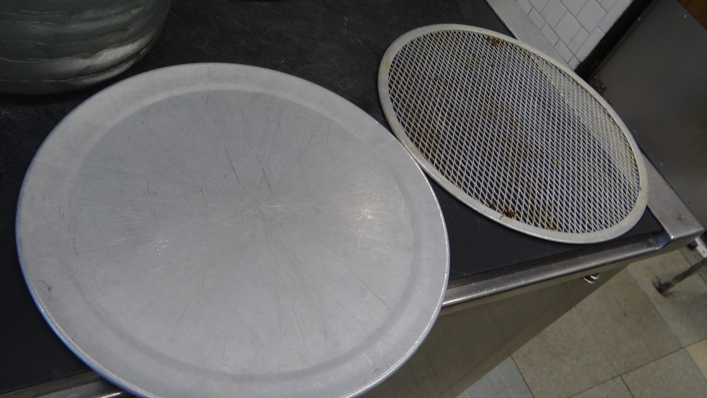 Item # 87 -- (24) Pizza Trays: 15 Pizza trays and 9 serrated pizza trays with stands