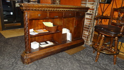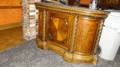 (1) Burled walnut console with marble insert 68" X 20" X 42"