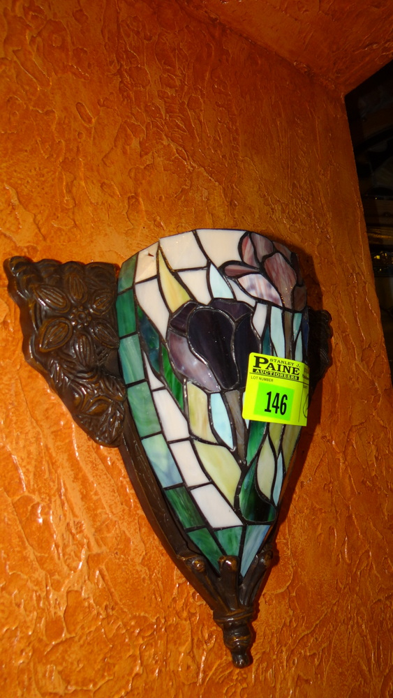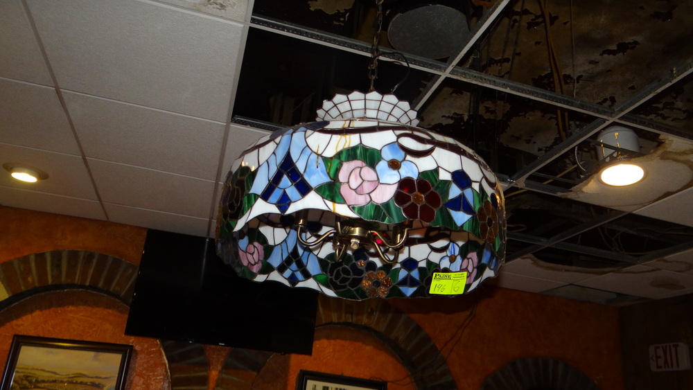 Item # 146 -- (6) Lot (2) Tiffany style chandeliers along with (4) Tiffany style sconces