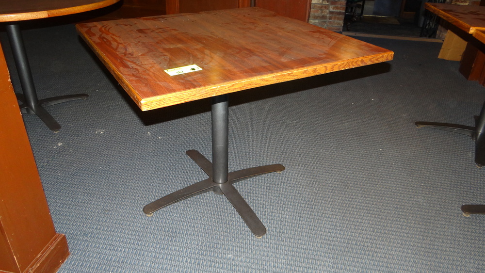 (3) Solid wood tables with bases 36" X 36"