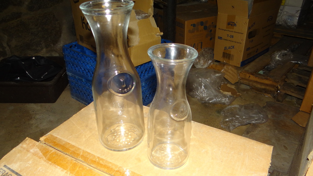 Item # 198 -- (24): (12) Libbey 97001 1/2 Liter decanters, (12) Libbey 970010 1 Liter decanters