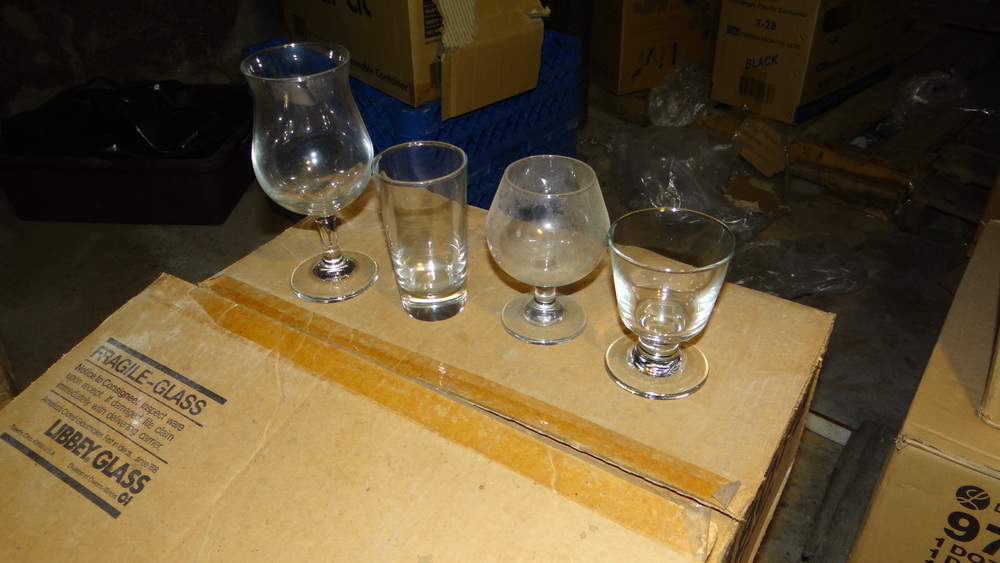 (58) Libbey 131 6 1/2 oz Highball, (13) Libbey 3704 9 oz Brandy, (16) Libbey 3717 13 1/2 oz Poco grande, (17) Libbey 3746 5 1/2 oz footed rock. New in box