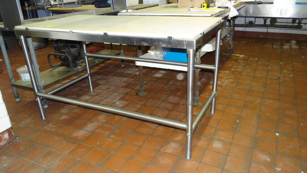 Item # 220 -- (1) Prep table with cutting boards 5' X 30"