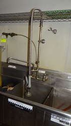 (1) Advance Tabco 3 Bay Deep Sink with Left and Right Drain Boards and Hand Spray 102" X 23" X 42" H and ECOLAB Sanitizer and ECOLAB Detergent Dispenser