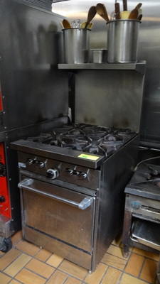 (1) Sunfire 4 Burner Gas Stove with Oven and Shelf Above , 24"x34"x56" H