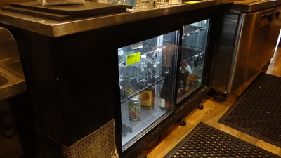 Item # 441 -- (1) True TBB-24-60G-SD-LD Two Section Sliding Glass Door S/S back bar Refrigerator, 61"x25"x34" H