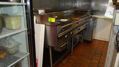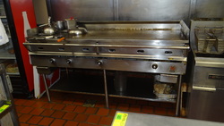 (1) S/S Wolf 4 Burner Flat Top Gas Grill. 6'x34"x18" H On S/S One Shelf Grill Stand. 26"x27"x26" H