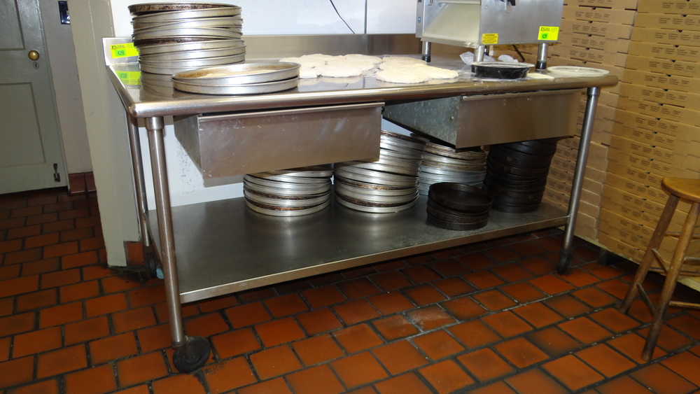Item # 428 -- (1) S/S Mobile 2 Drawer 1- Shelf Prep Table W/ 4" Backsplash 6'x36"x40" H
