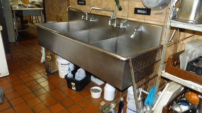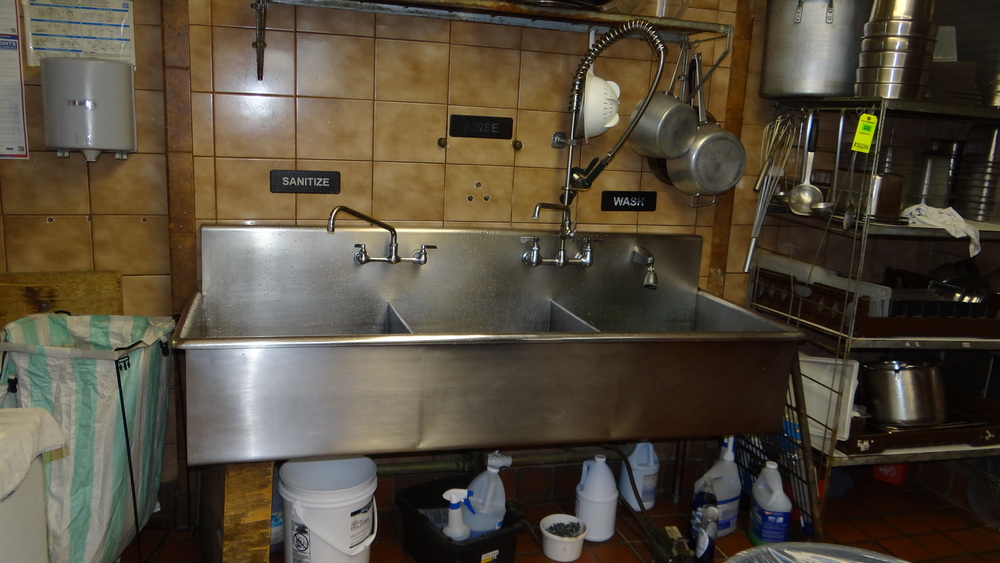 Item # 439 -- (1) S/S 3 Compartment Sink W/Pre Rinse Sprayer 75"x27"37" H
