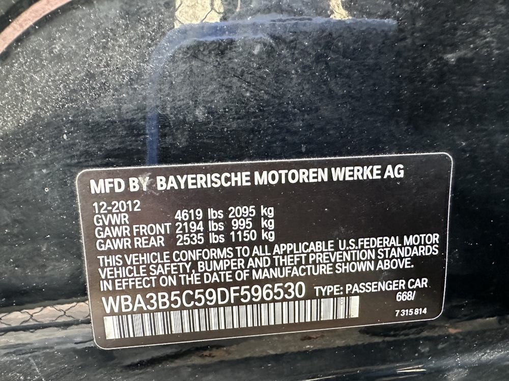 2013 BMW 328i xDrive 4 Cylinders 2.0L Twin Turbo DOHC 121 CID. VIN: WBA3B5C59DF596530. Odometer: 143,501 Miles. Watertown PD.