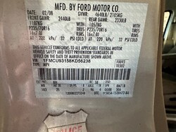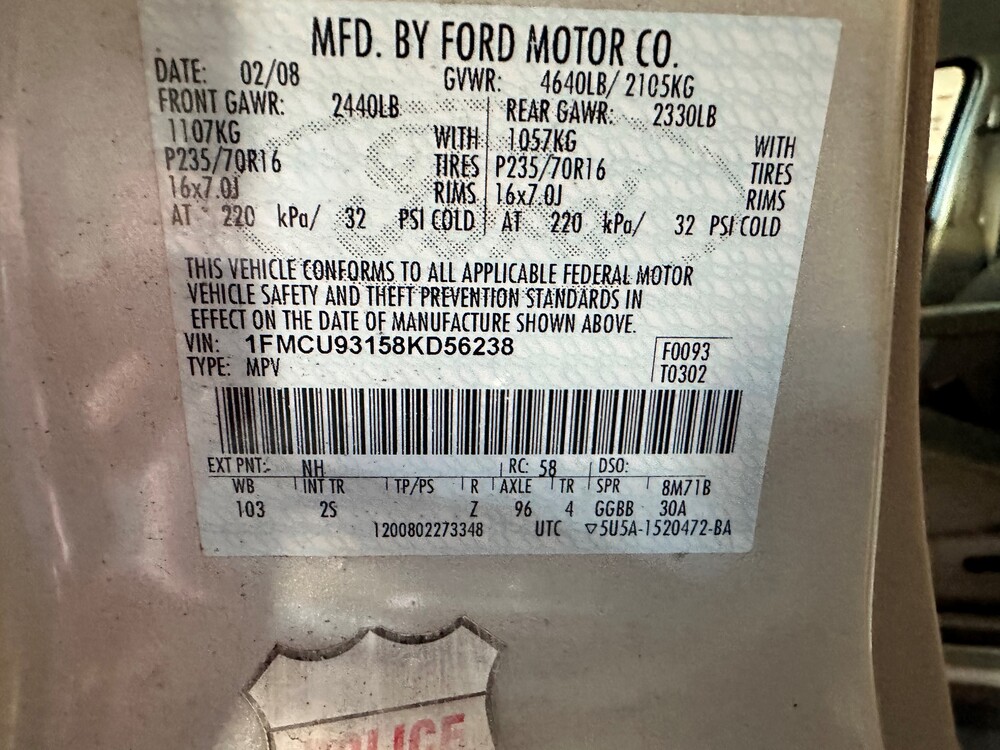 2008 Ford Escape 4WD 6 Cylinders 1 3.0L FI DOHC 183 CID. VIN: 1FMCU93158KD56238. Odometer: 175,482 Miles. Waltham PD.