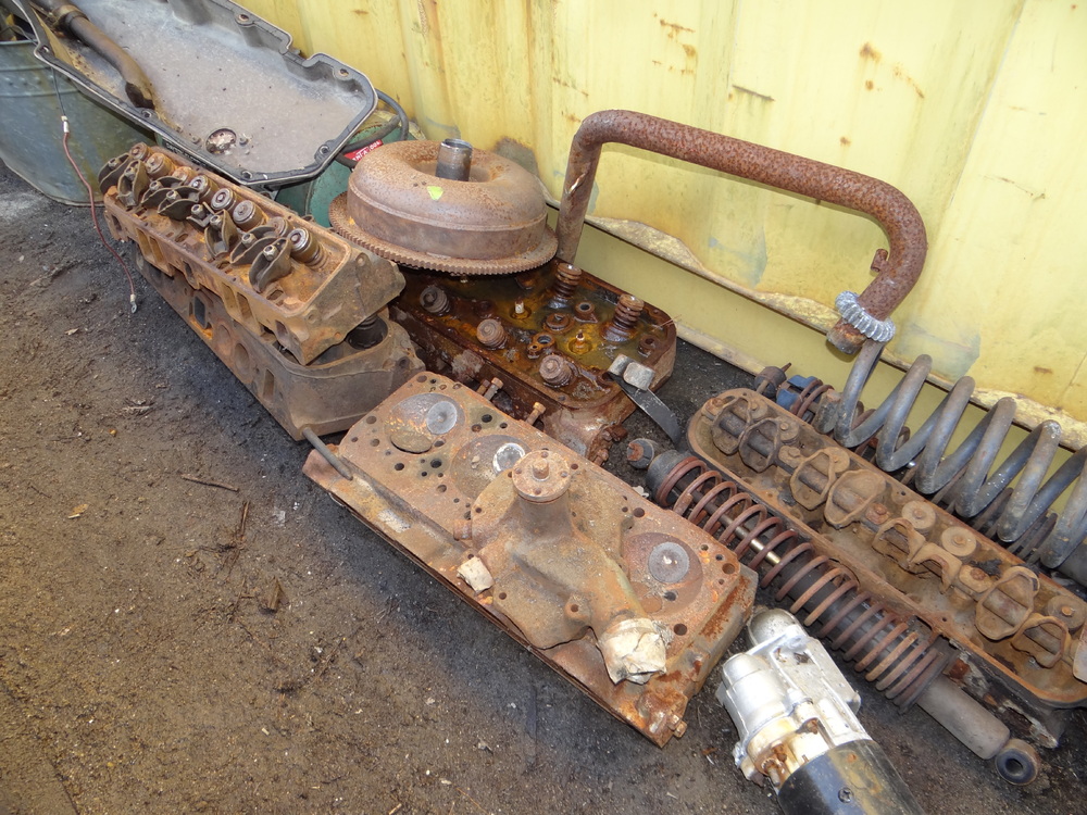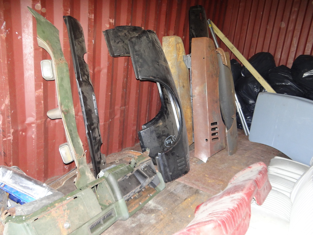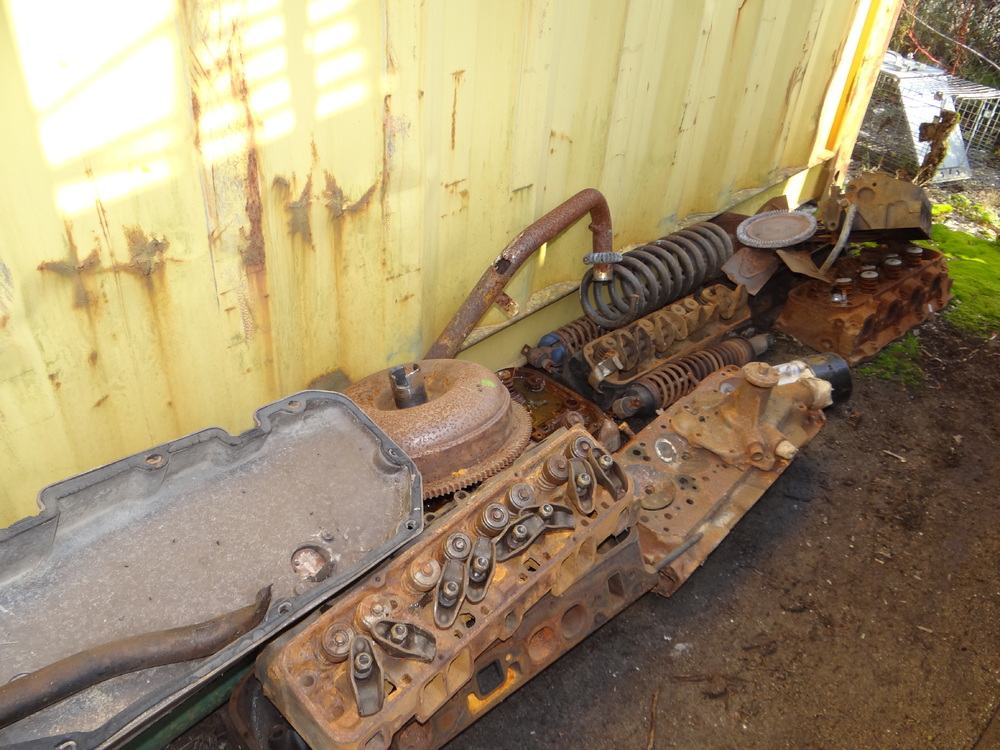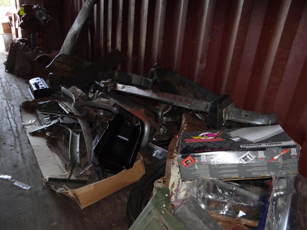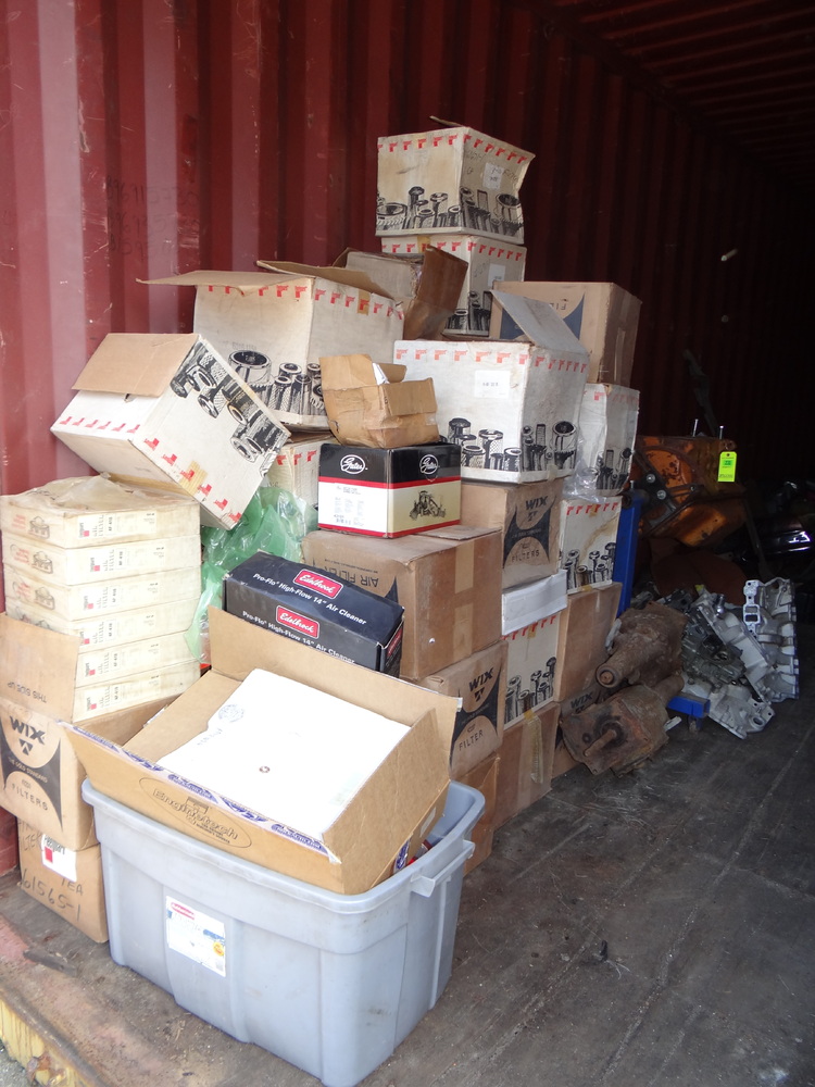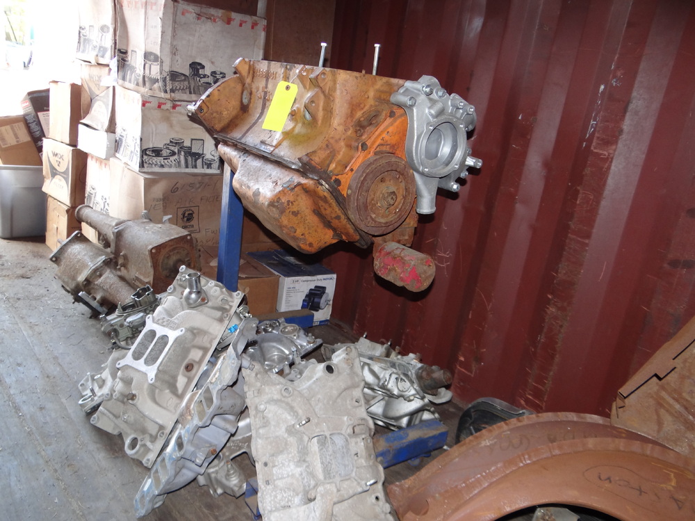 Contents of Container: Air Filters, Manifolds, Carburetors, Engine Stand w/383 Engine Block, Transmissions, Fenders, Bumpers, Cylinder Heads, Valve Covers, Car Seats, Brake Drums, etc. "Container Not Included".