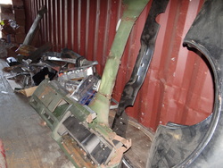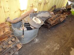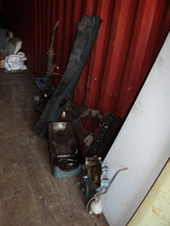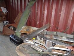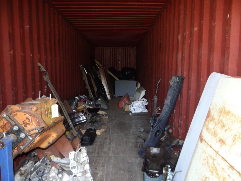 Item # 231 -- Contents of Container: Air Filters, Manifolds, Carburetors, Engine Stand w/383 Engine Block, Transmissions, Fenders, Bumpers, Cylinder Heads, Valve Covers, Car Seats, Brake Drums, etc. "Container Not Included".