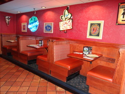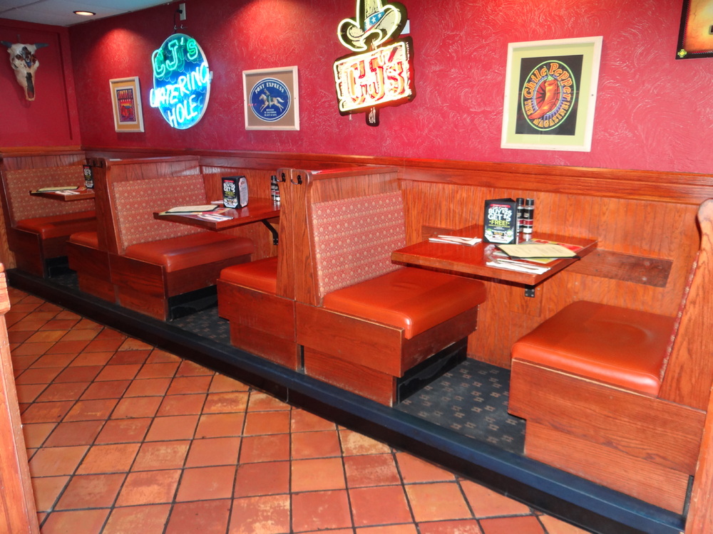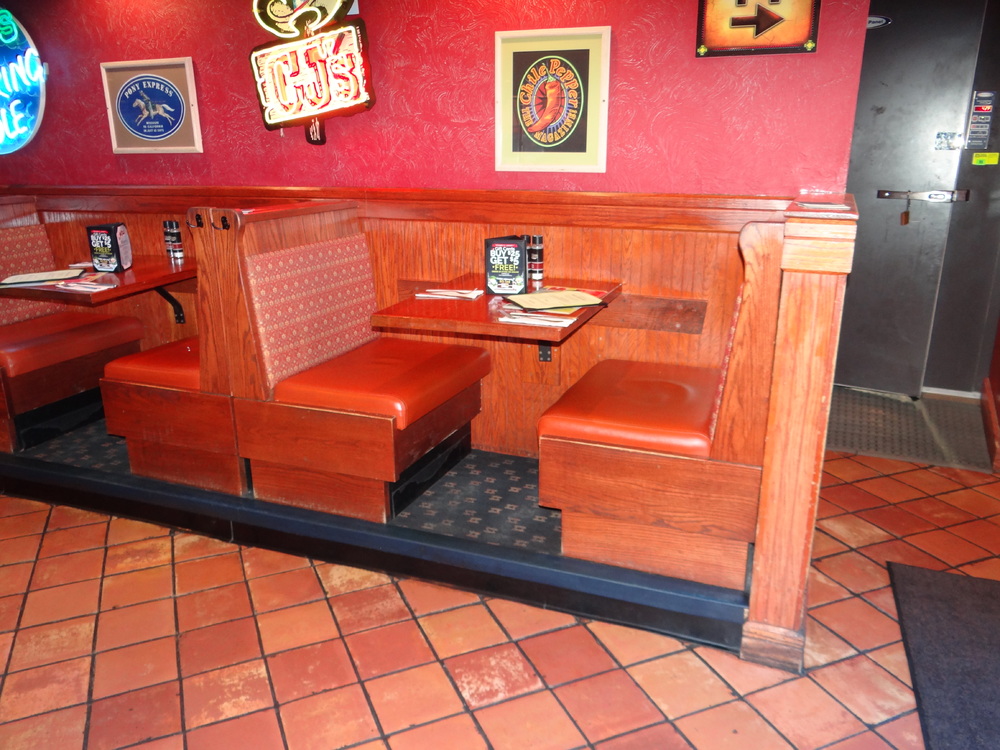 (1) Set 3 Upholstered Booths w/ 3 Oak Wall Mounted Table Tops 30" X 25"
