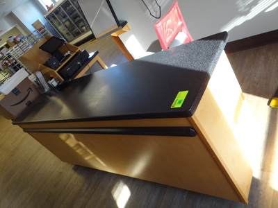 (1) Maple and Formica L-Shape Cash Register Stand 96" X 48"