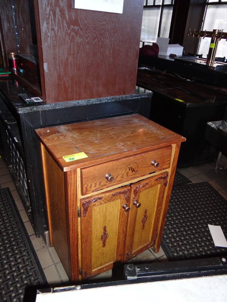 Item # 258 -- (1) 1 Drawer Over 2 door Oak Cabinet 28"x18"x3'H