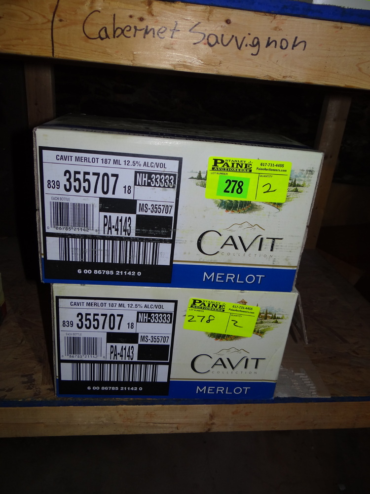 Item # 278 -- (2) Cases, Closed Wine Pourers, Cavit Merlot, (24) 187 ML Bottles/Case. Bidders Must Have an Alcoholic Beverage License