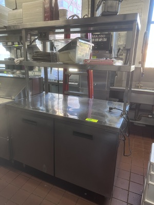 Item # 3 -- (1) Randell 9301-7 S/S Solid 2 Door Worktop Refrigerator S/C with Double Overtop Warmer 48" X 30"