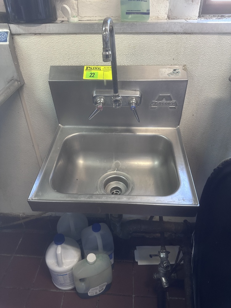 Item # 22 -- (1) S/S Hand Sink. 8" Backsplash 17" X 15"