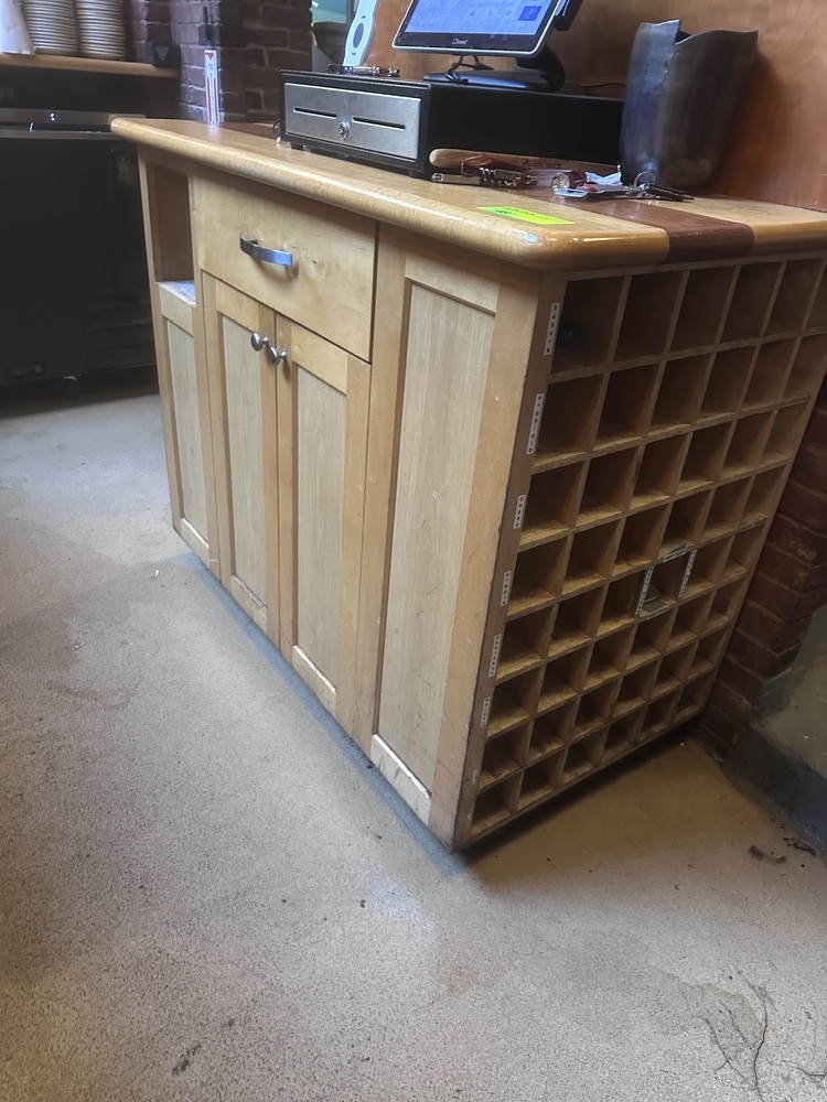 (1) One Drawer Over 2 Door Cabinet w/ 56 Wine Storage Bins on Side. 51" X 29" X 42" H
