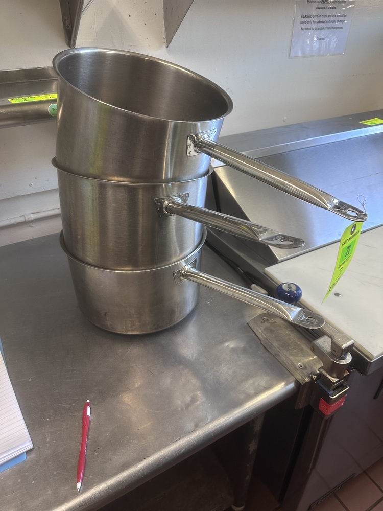 Item # 71 -- (3) S/S 18 QT Sauce Pans