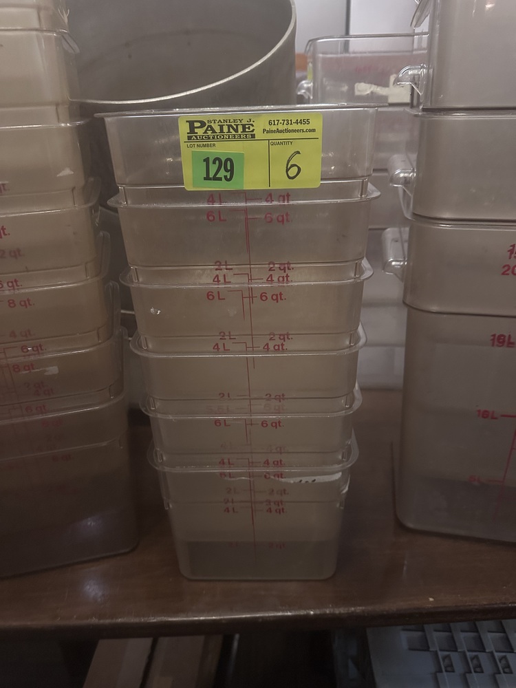 Item # 129 -- (6) Cambro 6 QT Food Storage Containers