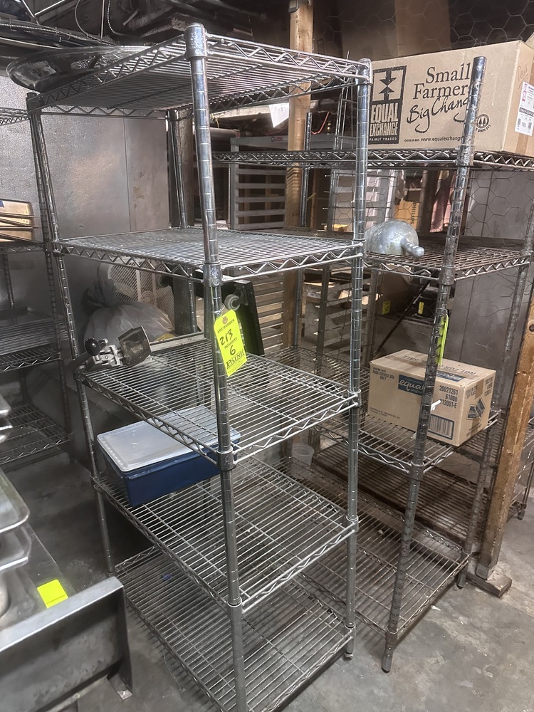 (6) Metro Racks (1) 6' X 18" X 55", (1) 30" X 18" X 64", (1) 36" X 21" X 64", (1) 4' X 24" X 63", (2) 6' X 18" X 75"