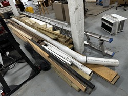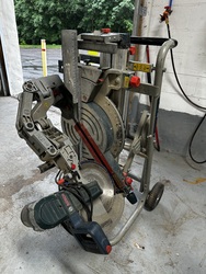 (1) Lot Asst'd Aluminum Planks, Scaffolding and Accessories#287 - (1) Bosch GCM12SD Corded Dual Bevel Gear Miter Saw 12". Along with Bosch T4B Gravity Rise Wheeled Miter Saw Stand
