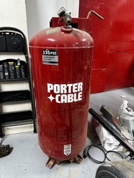 (1) Porter Cable CPLC7060V-1 Electric Air Compressor. Single Stage Oil Lube. 60 Gallon. 240V, 1 PH, S/N 2303000310#291 - (1) Sears 103.0803 Disc Belt Sander 6" X 48". 110/220, 60 HZ 1/2 HP, 1725RPM