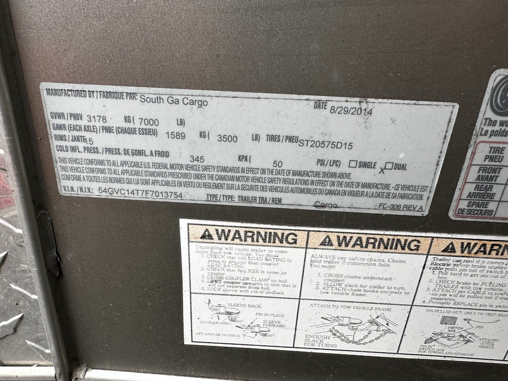 (1) 2014 Fabrique PAR Trailer VIN: 54GVC14T7F7013754. 14' X 7' X 8' H.