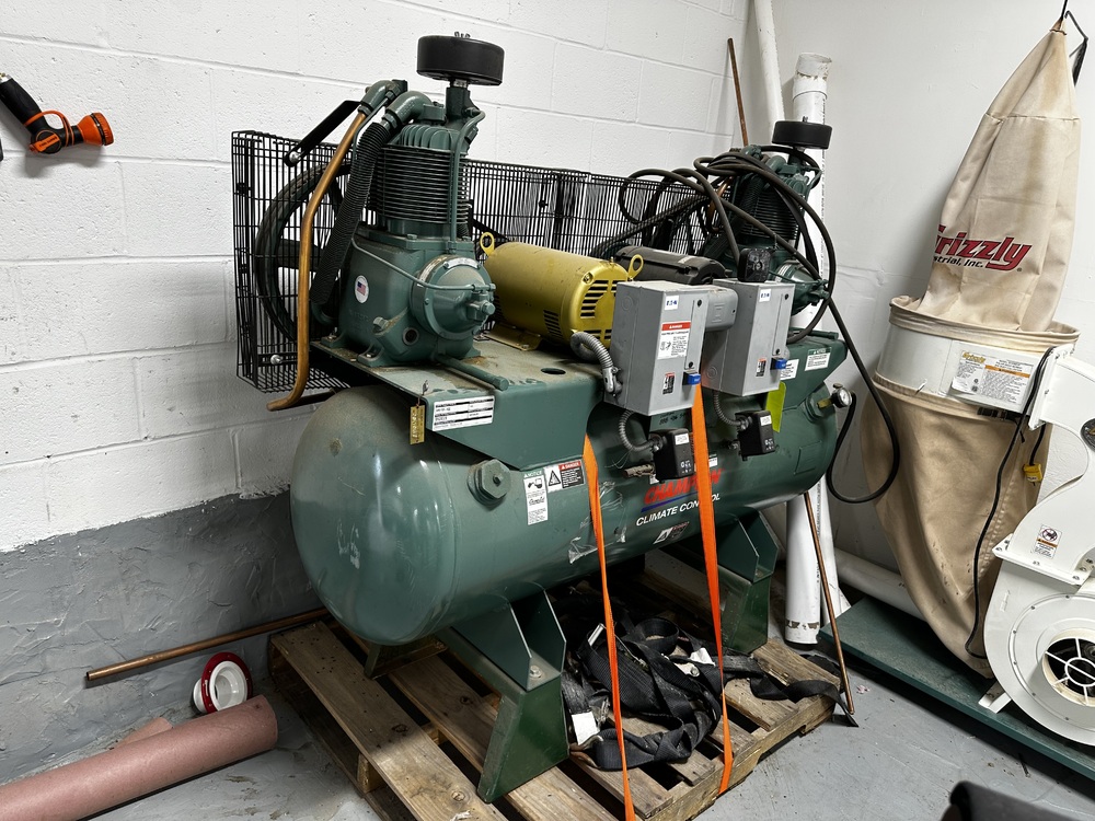 (1) Champion HR515D-8CC 5HP, 230V, 3 PH Duplex Reciprocating, Climate Control Compressor. S/N D128328