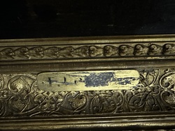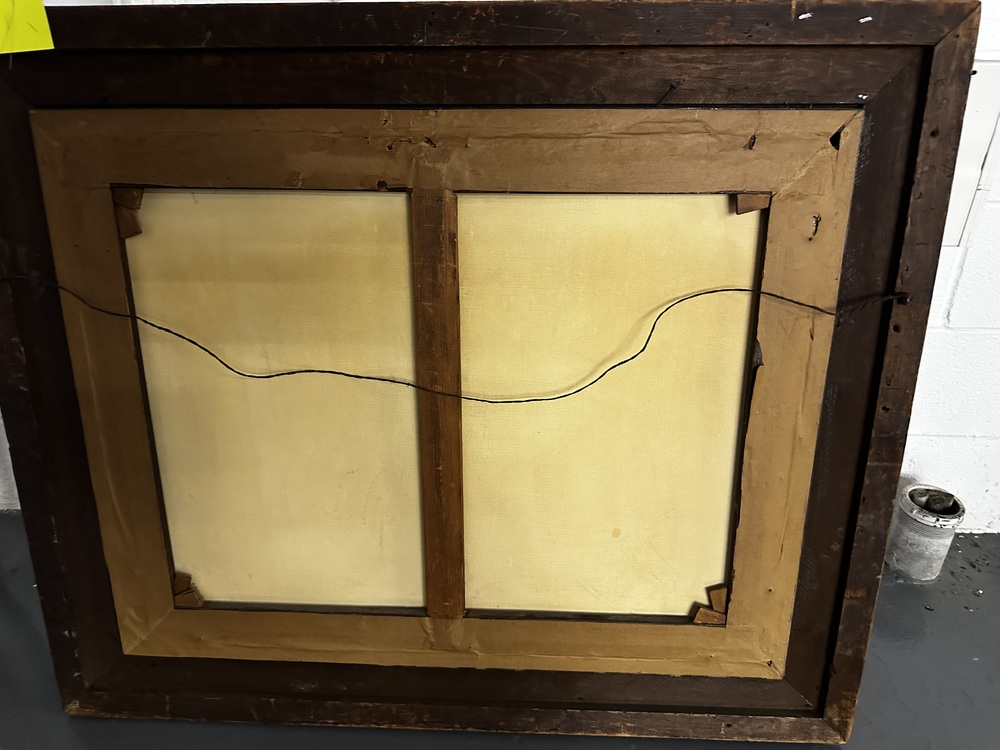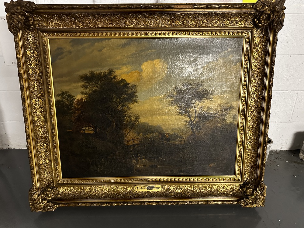 (1) Antique Oil On Canvas Landscape Of Fisherman, Mounted In Gilt Frame 24"X32" Sight