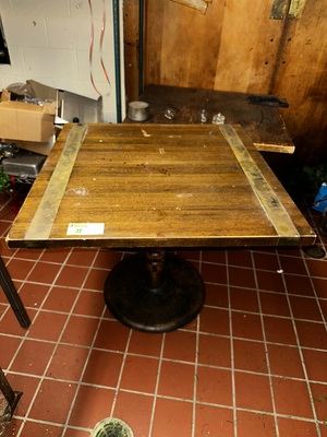 Item # 22 -- (1) Brass Bound Wood Top Dining Table w/Metal Base 36"X36"