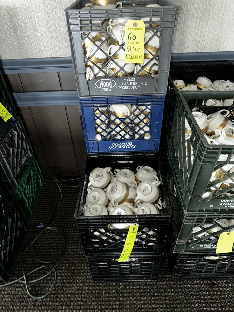 Item # 60 -- (1) Lot 5 Milk Crates 250 China Boullion Cups